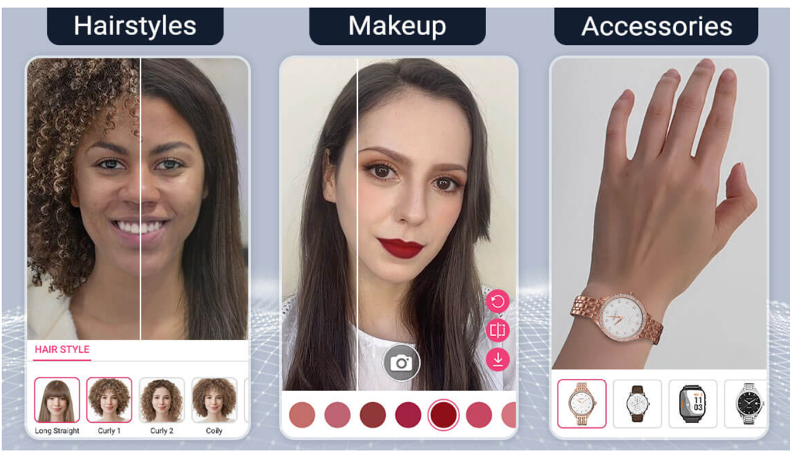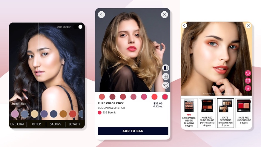 Cosmetics: Makeup VTO was one of the first applications of AR in beauty tech. What began as a basic AR camera experience that enabled users to try on different shades of lipstick and eye shadow has now expanded to include more challenging cosmetic types like blush and self tanning products.